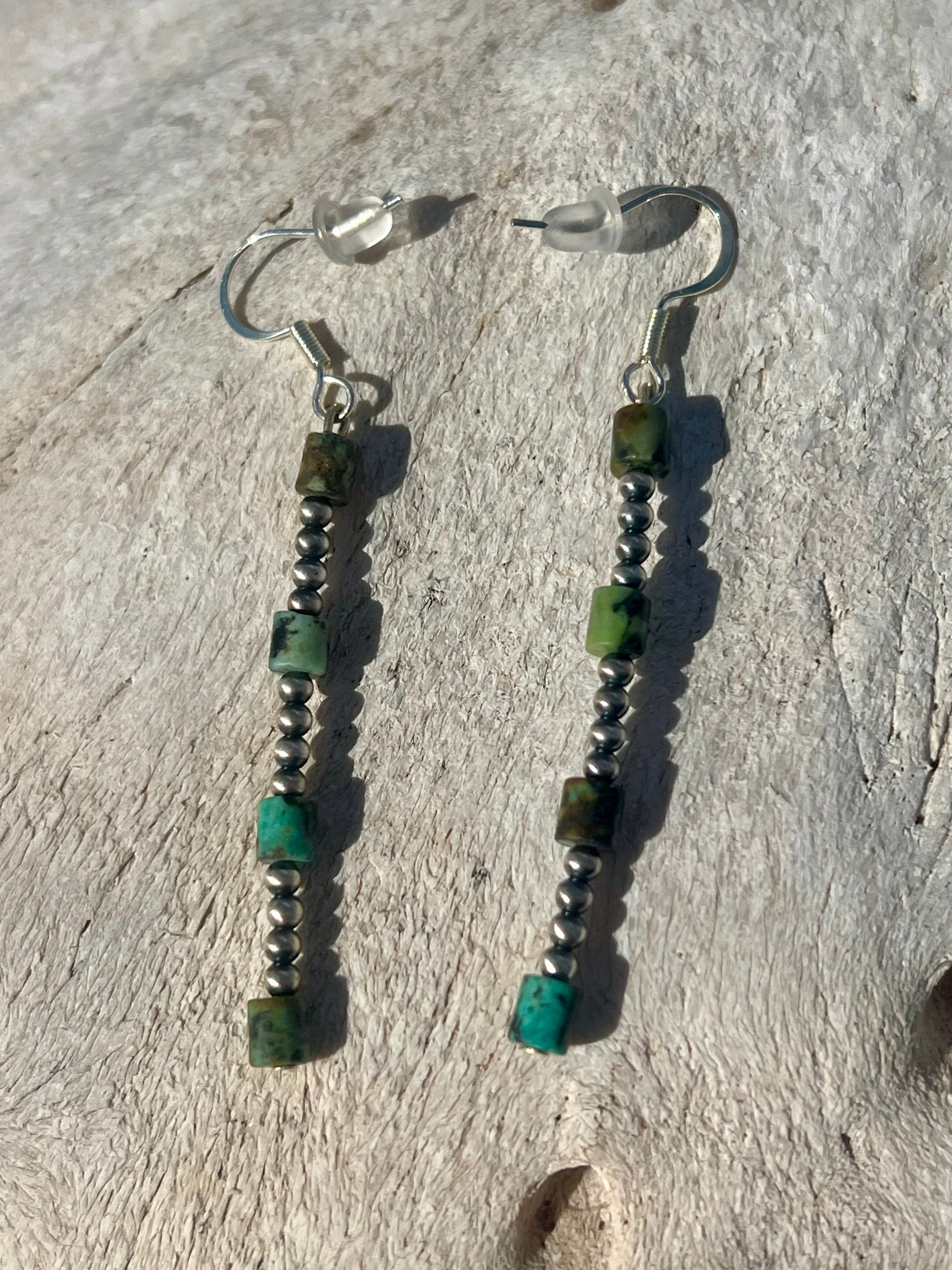 Elevate your style with The "Maple Leaf" earrings. Handcrafted with African turquoise jasper and genuine sterling silver 2mm beads, these earrings add a touch of natural beauty to any outfit.